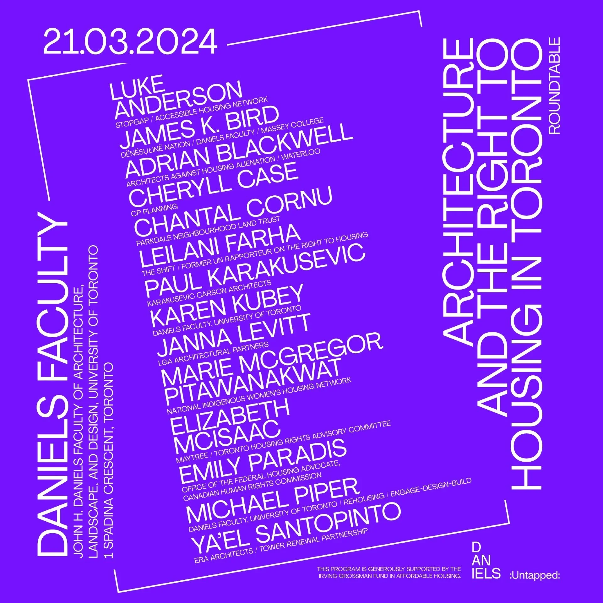 Proceedings will be published in Untapped, an open-access architecture platform. Programs are sponsored by the Social Sciences and Humanities Research Council of Canada (SSHRC), the Irving Grossman Fund in Affordable Housing, Untapped, and local partners.